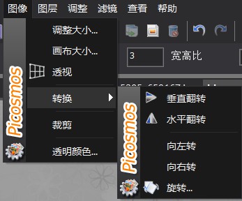 转换:将层垂直翻转、水平翻转、向左旋转90°向右旋转90°和指定的角度