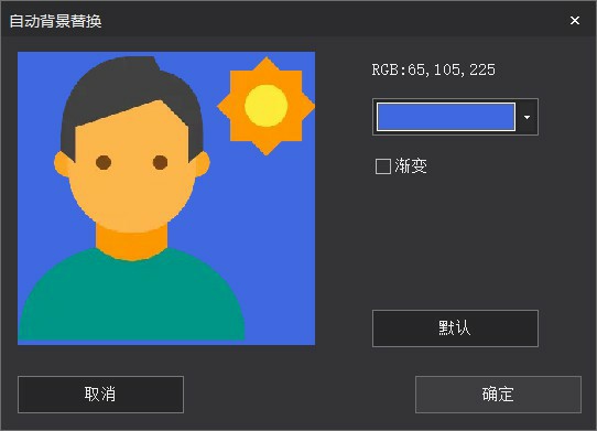 点击自动背景替换按钮弹出自动背景替换窗口,可以替换证件照背景