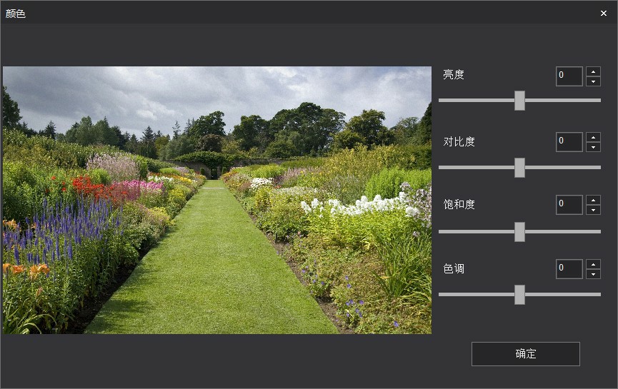 点击颜色按钮弹出颜色窗口,可以调节图片的亮度、对比度、饱和度和色调