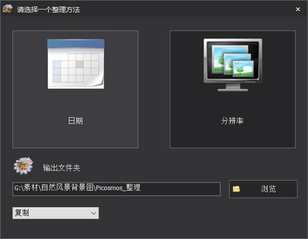 分辨率:按照图片的分辨率整理。例如,图片的分辨率是1024X768,图片就在Picosmos_整理\1024X768下